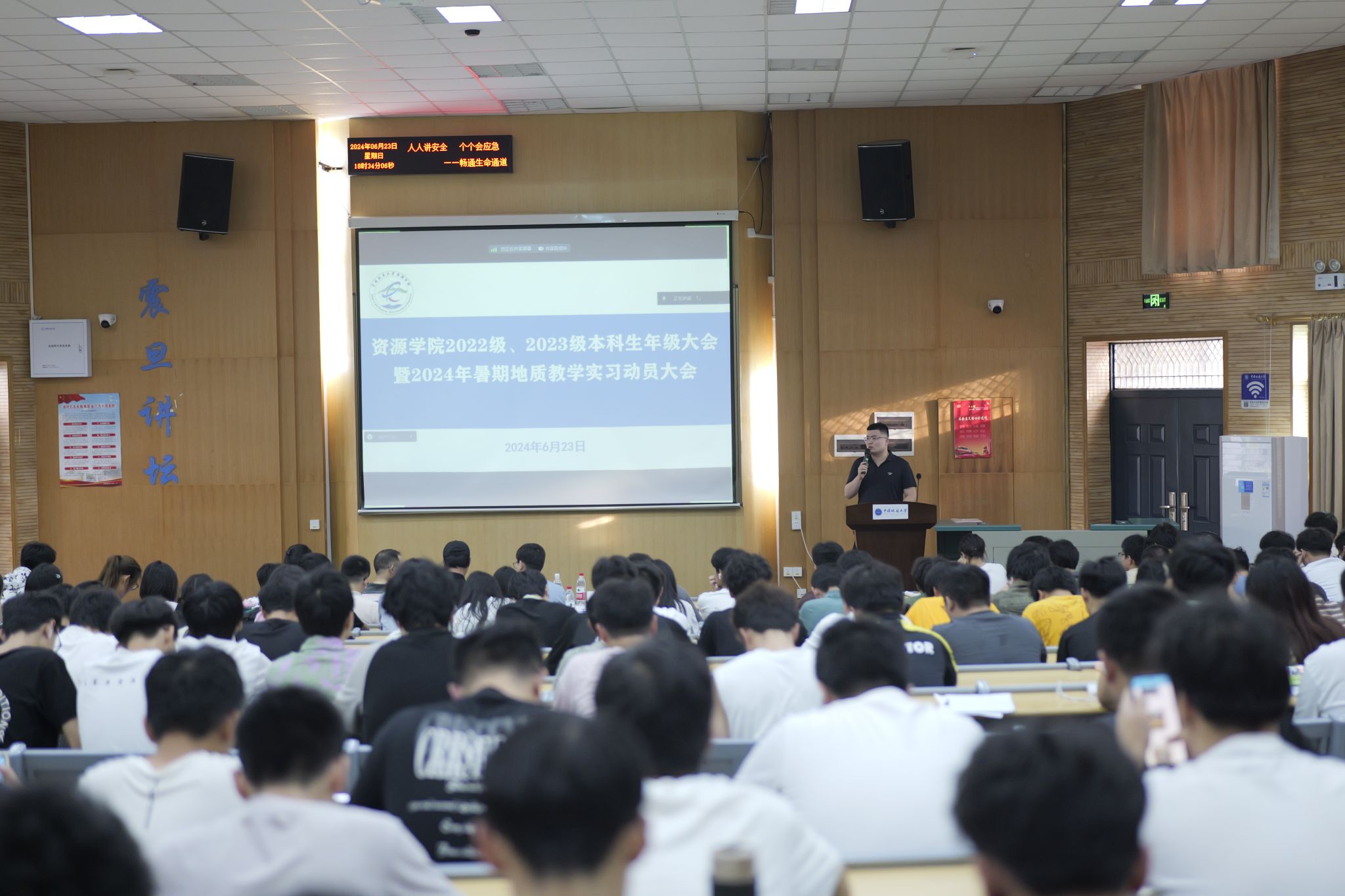 (通讯 冯思佳 彭鑫 摄影 李卓华 范汤豪)为做好大一大二年级学生暑期野外实习和社会实践的安排布置工作,提高学生在暑期的安全防范意识和能力,引导学生做好学涯规划,6月23日晚,allwincity万象城举行2024年暑期地质教学实习动员大会暨2022级、2023级本科生年级大会。周口店实习队队长魏启荣、秭归实习队队长李嘉光、北戴河实习队队长董田、辅导员彭鑫,兼职辅导员冯思佳,学生代表陈宇、王雨乐、吴佳桁、余慧、敖扬洋,2022、2023级全体本科生参加会议。
