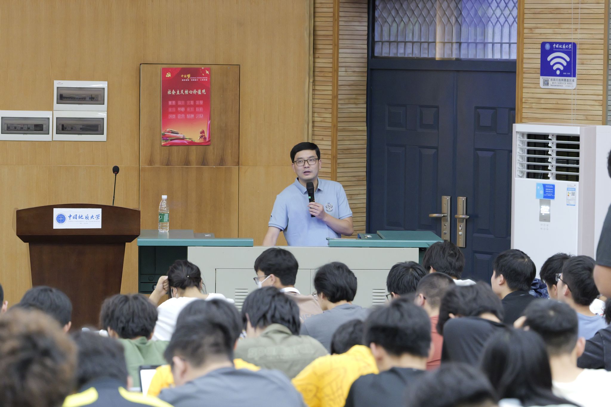 2021级资源勘查工程专业(基地班)学生代表吴佳桁作《周口店、秭归攻略》实习主题分享。他从实习纪律与安全、实习生活用品、基地生活情况、注意事项四个方面着手,为低年级同学精心准备了一份宝贵、实用的综合实习地质攻略。