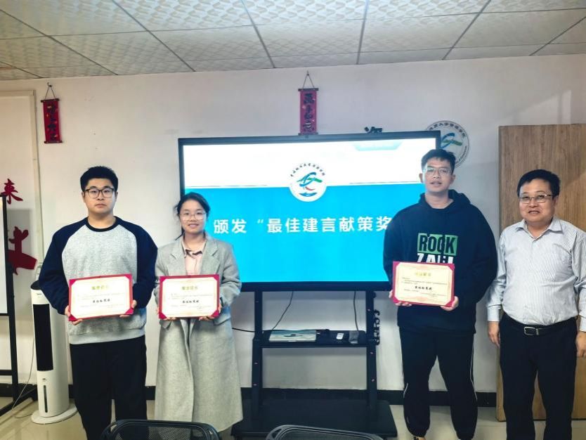 高复阳为余慧、蔡家瑞和李恒一颁发“最佳建言献策奖”。