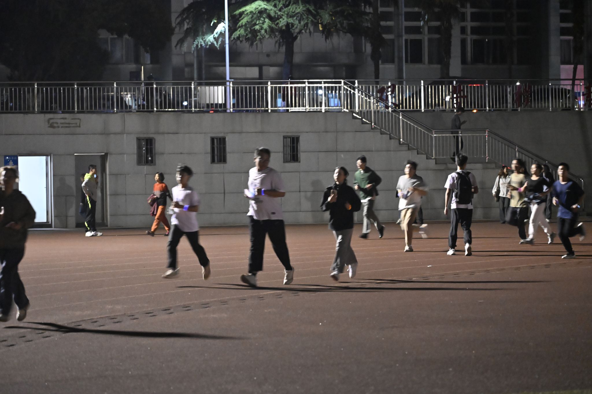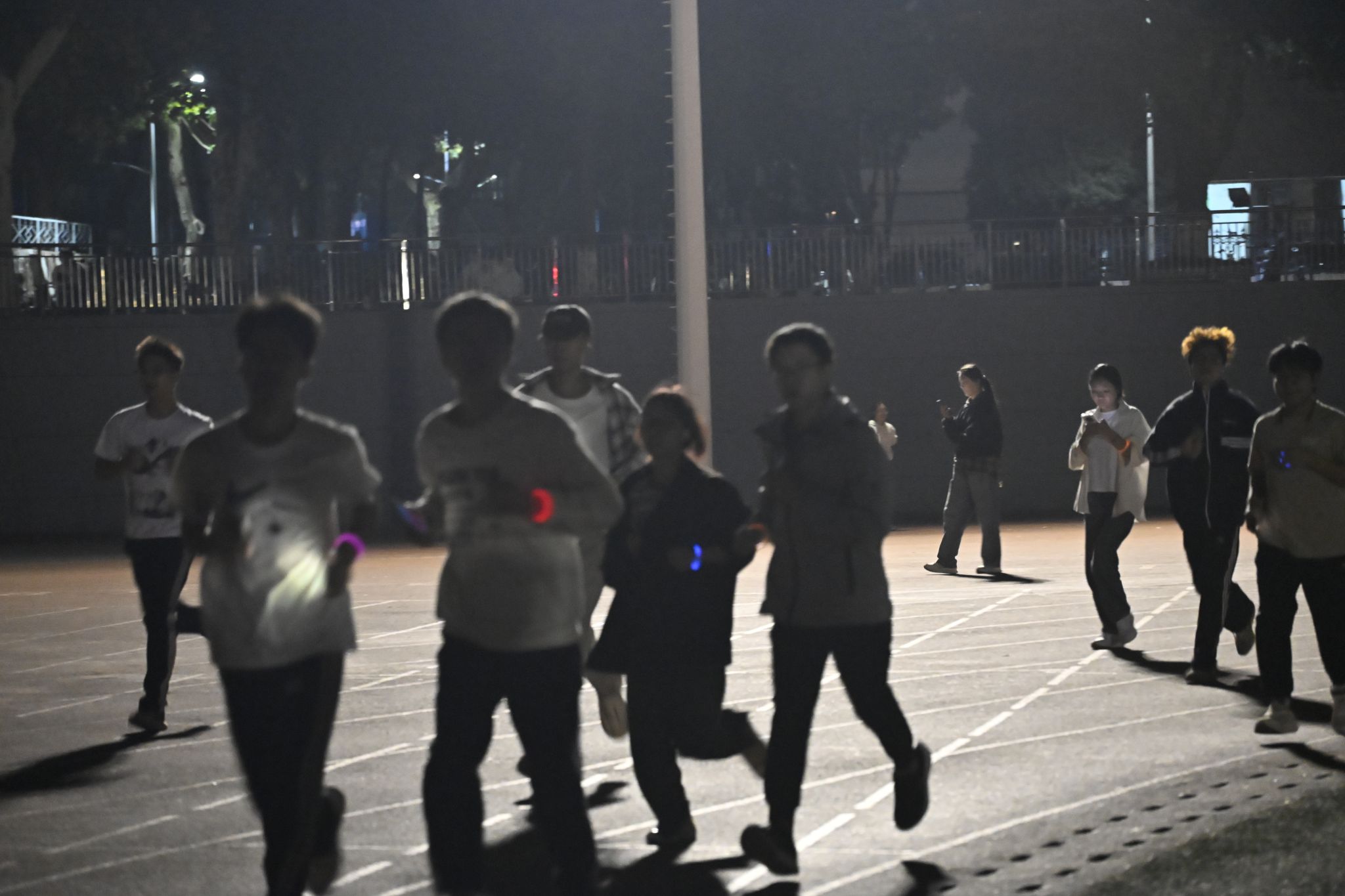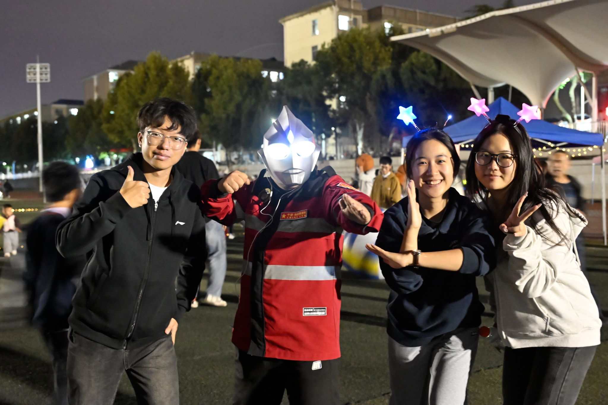19:00,随着主持人的一声令下,荧光夜跑正式启航。操场上,一条条荧光手环在夜色中闪烁,犹如点点繁星,照亮了青春的跑道。大家你追我赶,互相鼓励,共同完成了夜跑挑战。