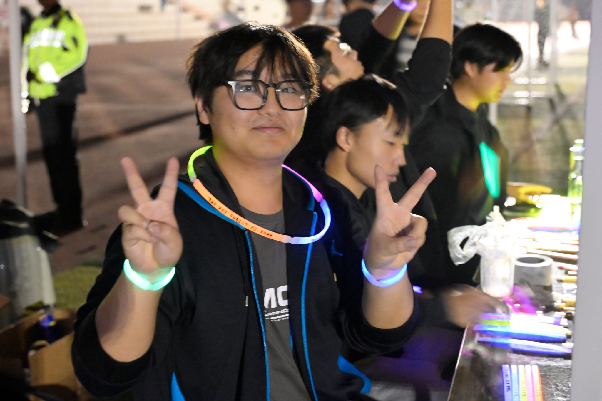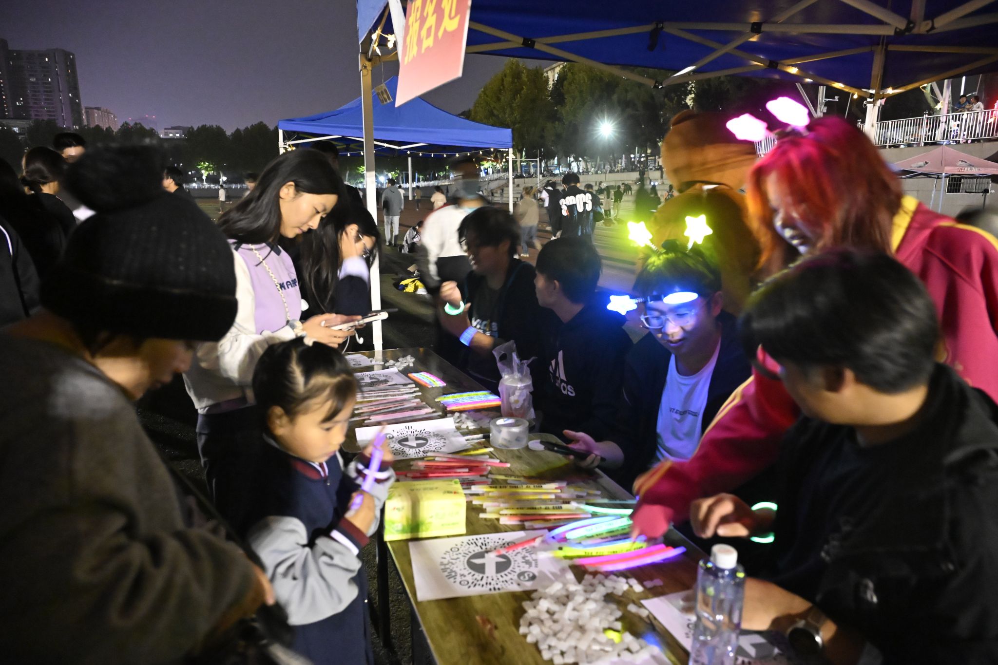 18:30起,参与师生陆续签到入场,领取专属荧光手环,为即将开始的夜跑之旅做准备。
