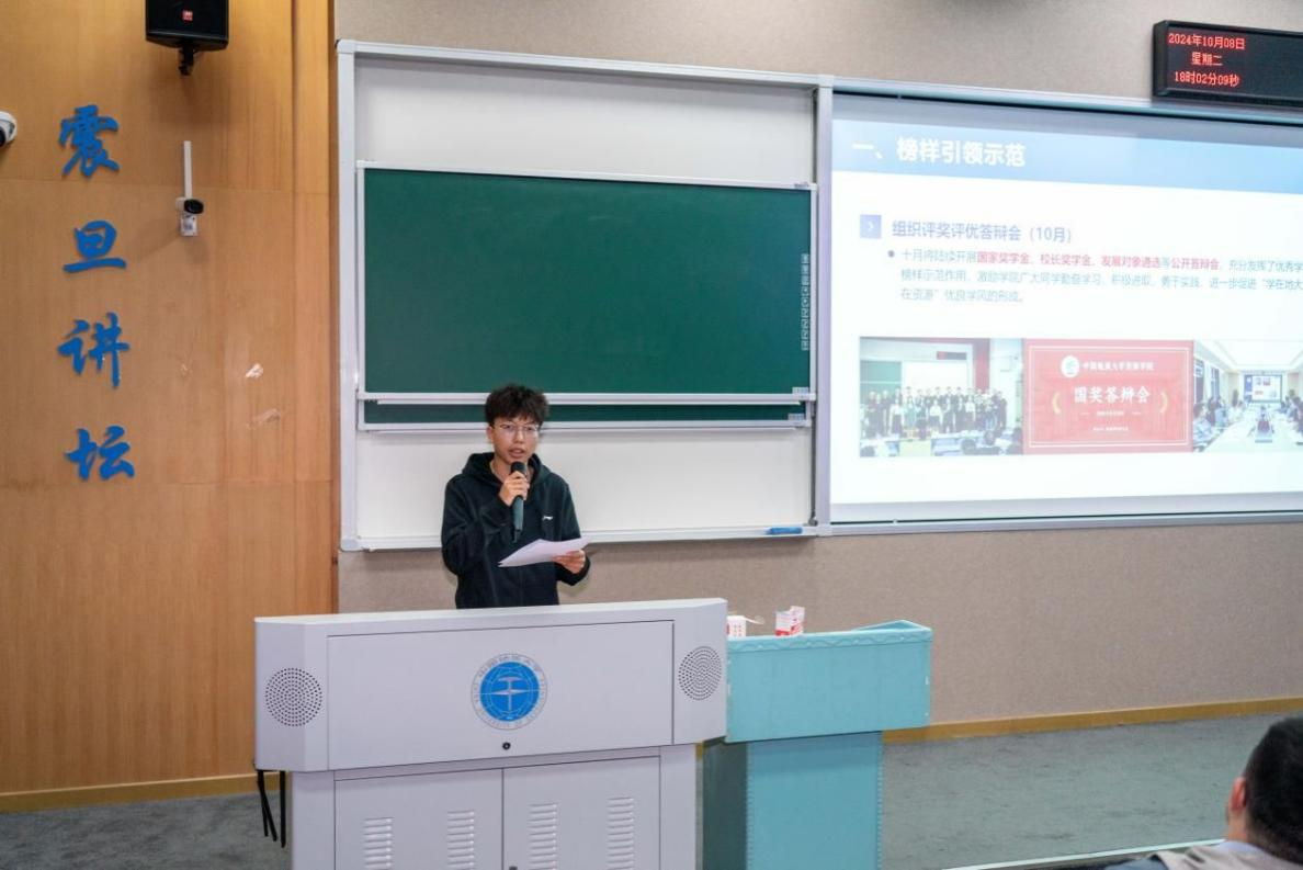 学院依托晚自习平台,适时开展学习经验分享、讲座论坛等活动。10月20日,资源红星讲师团成员李宛珊在集体晚自习为2023级全体同学做英语四级备考经验分享,帮助同学们完善复习计划,提升备考针对性。
