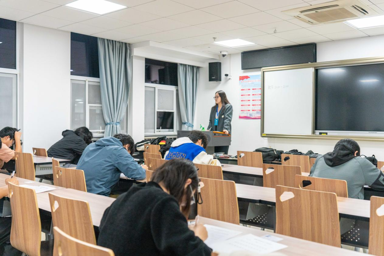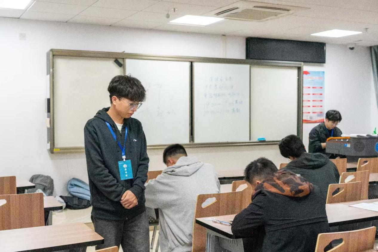 为检查和了解学生入学以来的学习情况,帮助同学们查缺补漏,11月3日晚,allwincity万象城学生会学习部在东区教学楼组织2024级本科生第一次月考,助理班主任、驻班党员担任监考员,考试科目为高等数学和大学英语。