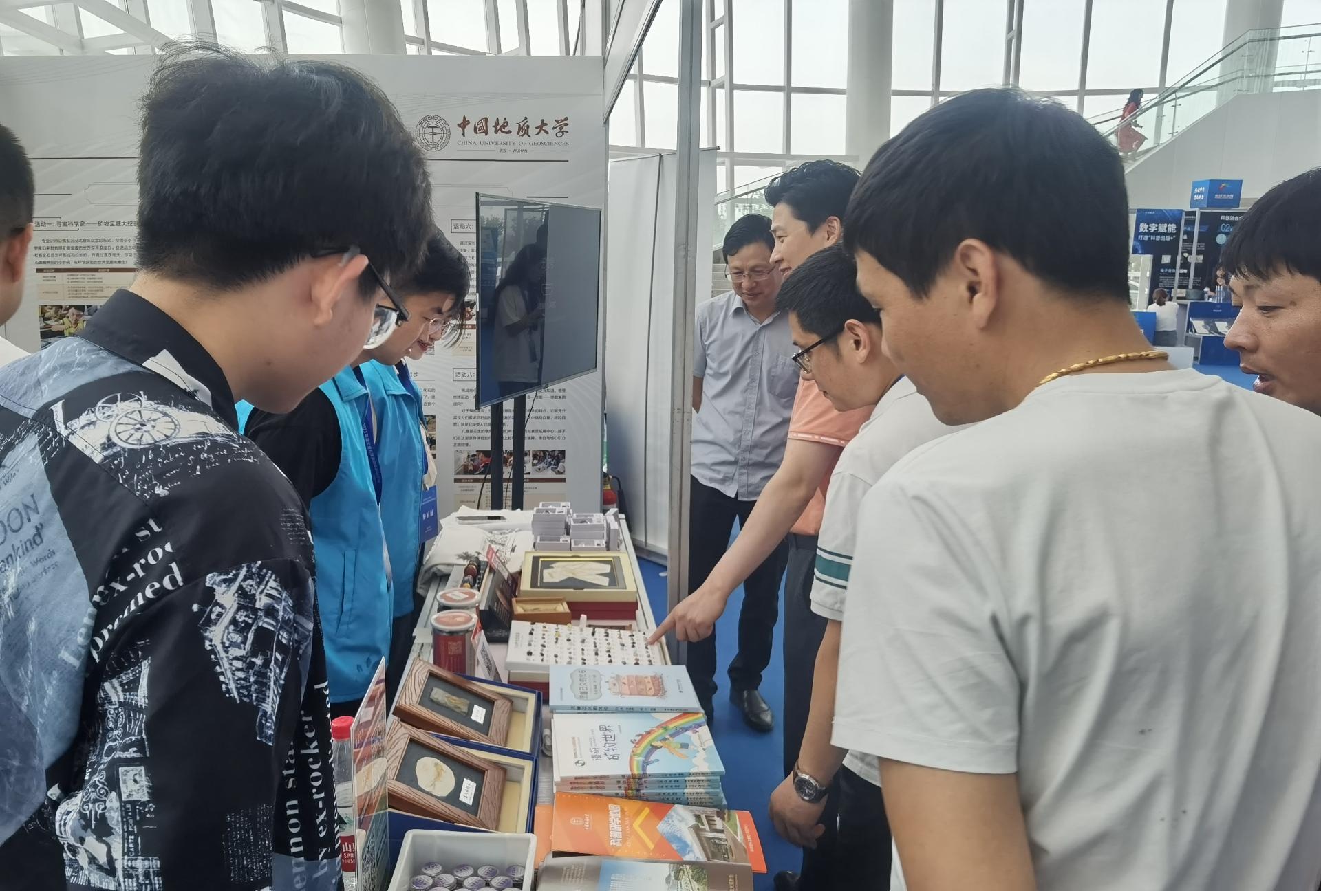 在展演现场,万象城科普志愿者向与会人员和公众介绍紫水晶、萤石、玛瑙等矿物的矿物特征,讲述科普研学课程,并利用矿产资源形成与勘查开发VR技术展示地形构造、火山作用、空间科学等虚拟数字模型,受到了热烈欢迎。