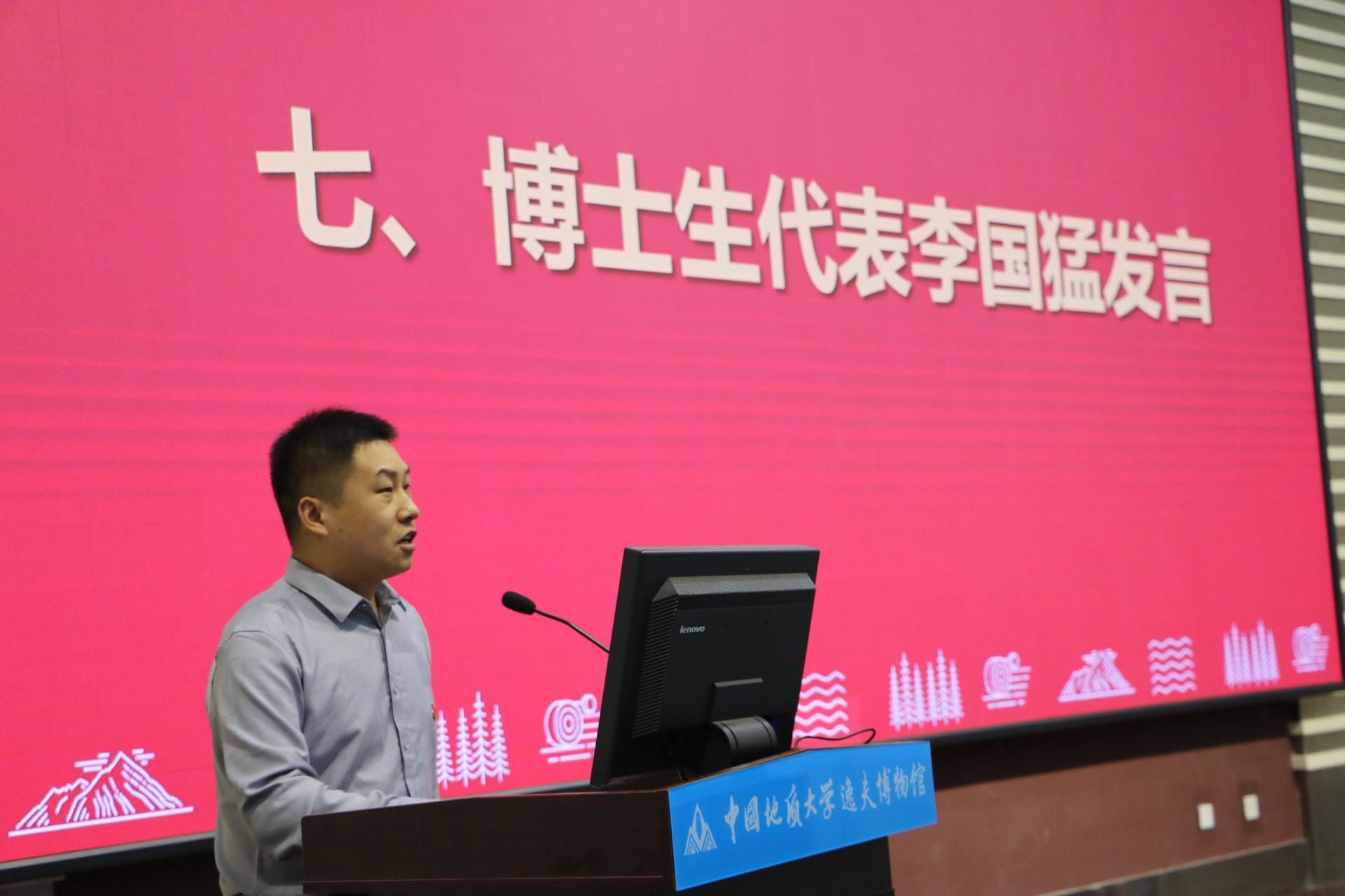 2019级本科生胡强分享了在导师的指导下和学院的关心下,自己从一个对地质一无所知的调剂生到爱上地质并选择继续在本院攻读博士学位的变化过程。他号召同学们依托学校学院优势平台和资源,勤奋学习,艰苦奋斗。