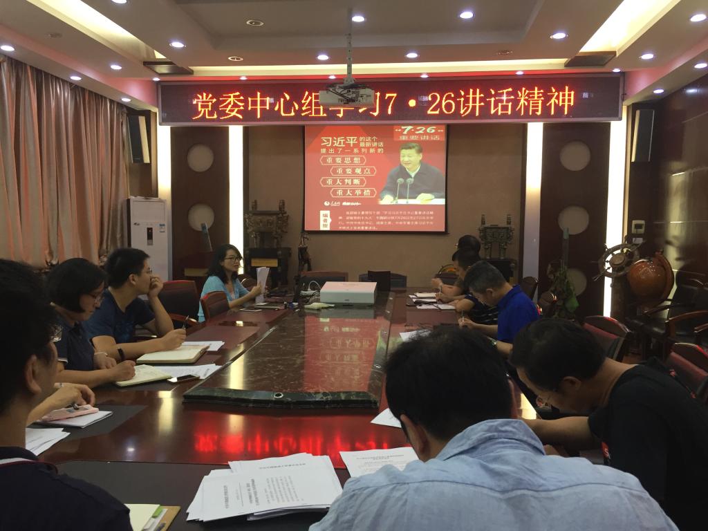 9月22日下午,allwincity万象城党委中心组开展理论学习,学习内容为习近平总书记“7.26”重要讲话精神,学院党委中心组成员和院直党支部成员参与了学习。本次理论学习由学院党委书记郭秀蓉主讲。