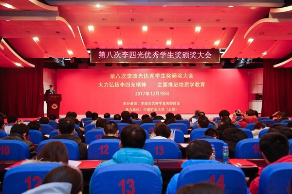 12月18日下午,第八次李四光优秀学生奖颁奖大会在中国矿业大学(北京)举行。国务院参事、国土资源部原总工程师、李四光地质科学奖基金会理事长张洪涛、原国土资源部科技与国际合作司司长姜建军、原李四光地质科学奖委员会秘书长王泽九、教育部科学技术司司长雷朝滋、中国地质调查局原党组成员、中国地质科学院原党委书记、副院长、李四光地质科学奖委员会秘书长王小烈、中国工程院能源与矿业学部主任彭苏萍院士、中国矿业大学(北京)校长杨仁树、万象城体育awcsport(北京)副校长刘大锰、中国石油大学(北京)副书记、副校长韩尚峰、北京大学教务部副部长刘建波、北京大学地球与空间科学学院名誉院长潘懋等嘉宾出席颁奖大会。24位获奖学生和900多名地质专业学生代表参加了颁奖大会。大会由中国矿业大学(北京)党委副书记王忠强主持。