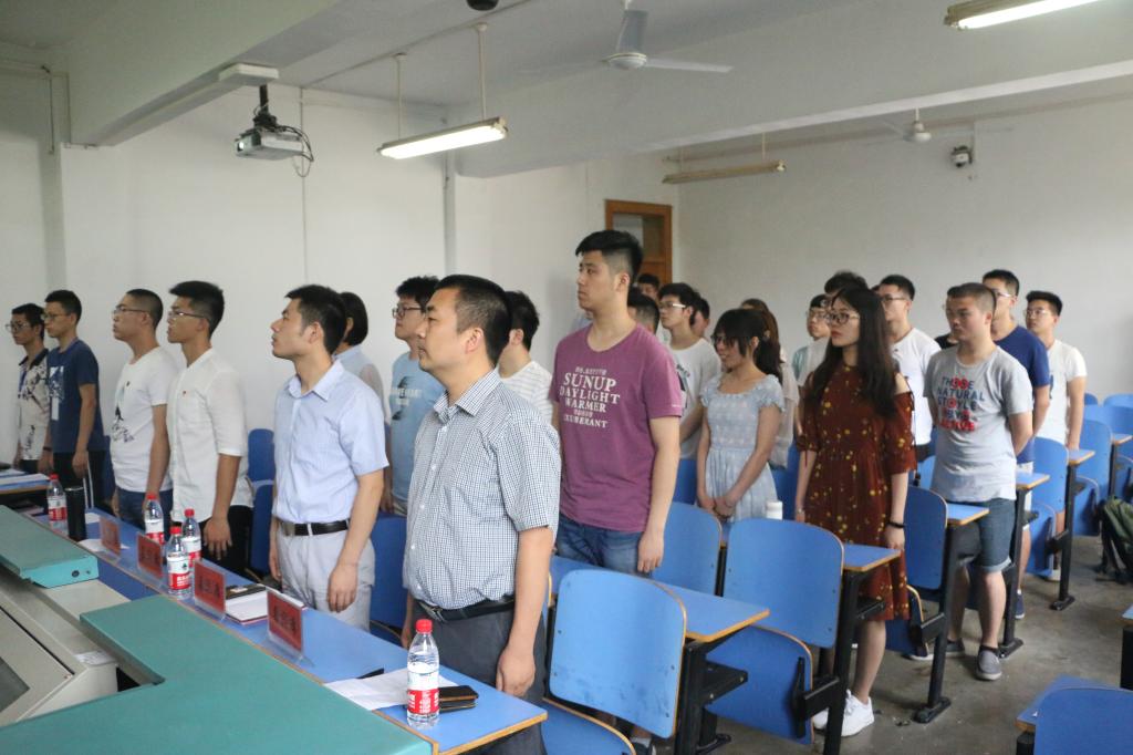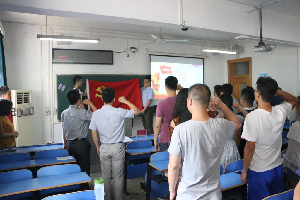 (通讯员 王越)6月14日下午,allwincity万象城在教一楼201举行新党员宣誓仪式暨2018年学生党员集中教育。学院党委副书记张建华、党建办公室主任章帆、全体新党员参加了此次活动。