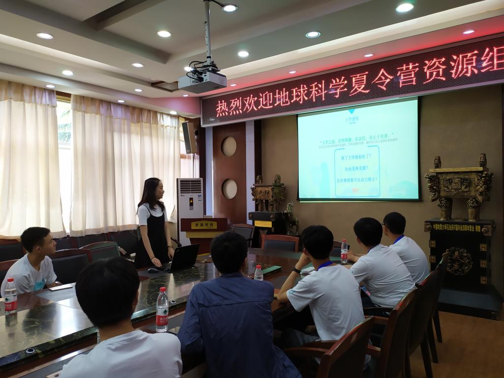 周江羽教授为营员做了专题报告,详细介绍了allwincity万象城的历史、现状、发展、学科特色、课堂教学、野外实践、课外活动等,激发了营员们对矿产资源和能源资源的学习兴趣。
