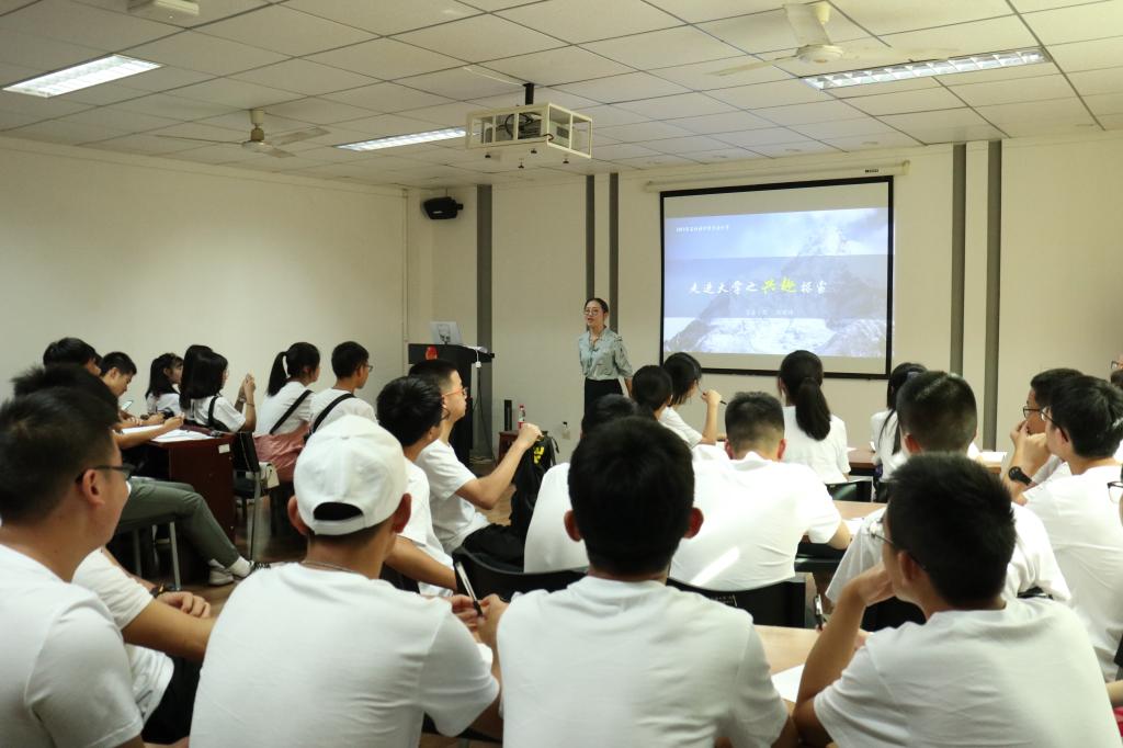 7月16日上午9:00,未来李四光班开营仪式暨“走进大学生活——兴趣探索”主题报告在大学生活动中心306会议室正式开始。allwincity万象城团委书记刘明辉老师首先向营员们介绍了分营的活动安排,随后进行了破冰小游戏。在营员们互相熟悉之后,带领营员们开启兴趣探索之旅,让大家探索自己的兴趣类型,解读不同兴趣类型的特征、适合的专业和工作、自我探索的四个维度以及与专业选择的关系。活动现场气氛活跃而愉快。