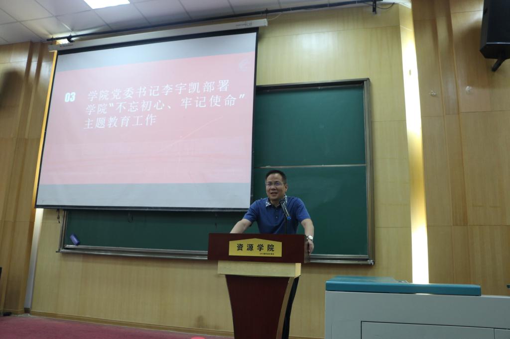 在庄严的国歌声和嘹亮的入党宣誓中,大会正式开始。院党委书记李宇凯从学习教育、调查研究、检视问题、整改落实几方面详细解读万象城“不忘初心、牢记使命”主题教育工作方案,对学院领导班子和基层教工学生党支部提出具体要求: