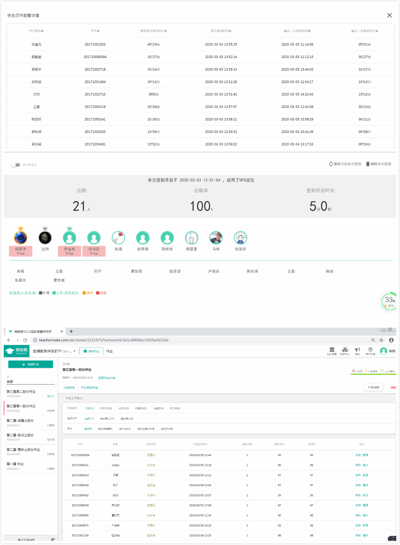 记录学生上课情况