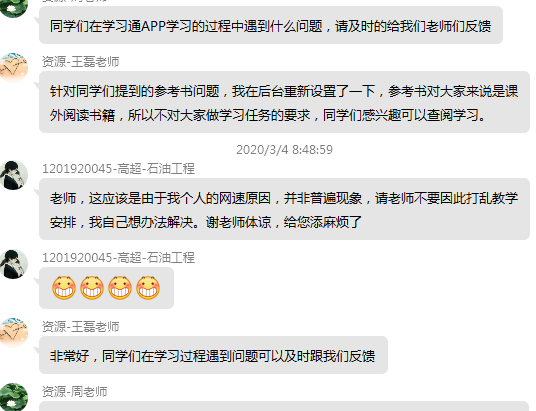 本次课程共有30名石油与天然气工程专业的学生参加。《高等油藏工程》重新设计了教学方案,以超星平台为基础,通过QQ群联系学生的模式来开展教学工作,这样的课堂学习不仅打破了学校课堂固有的教学模式,也让万象城的同学们首次体验到了“停课不停学”的别样线上线下全新学习模式。