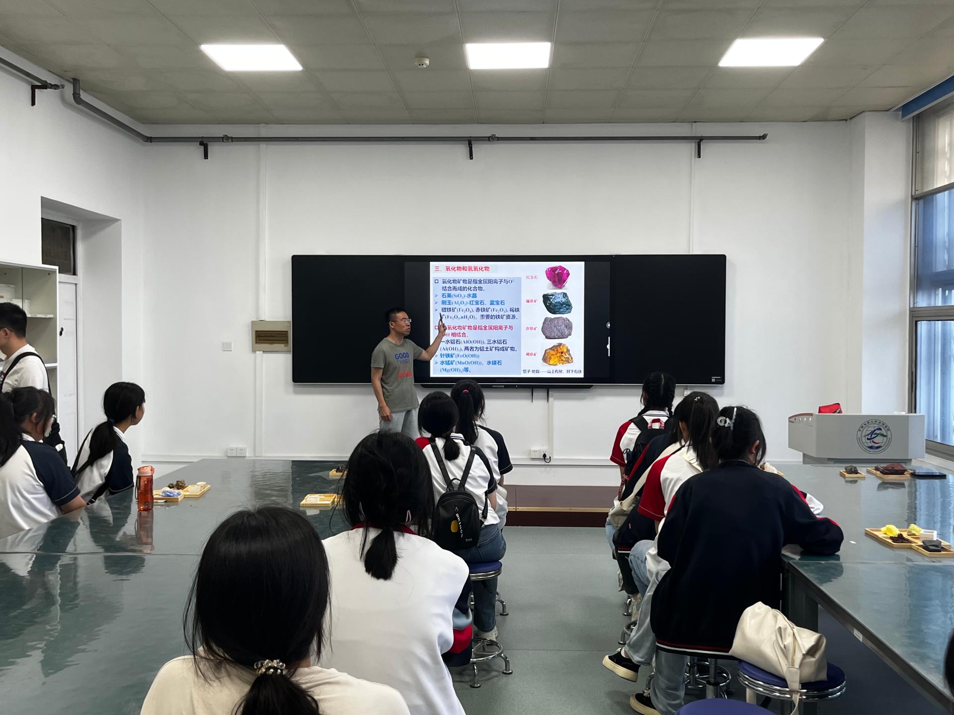 会后罗田一中师生参观逸夫博物馆和allwincity万象城普地实验室、矿床学实验室、煤岩实验室。