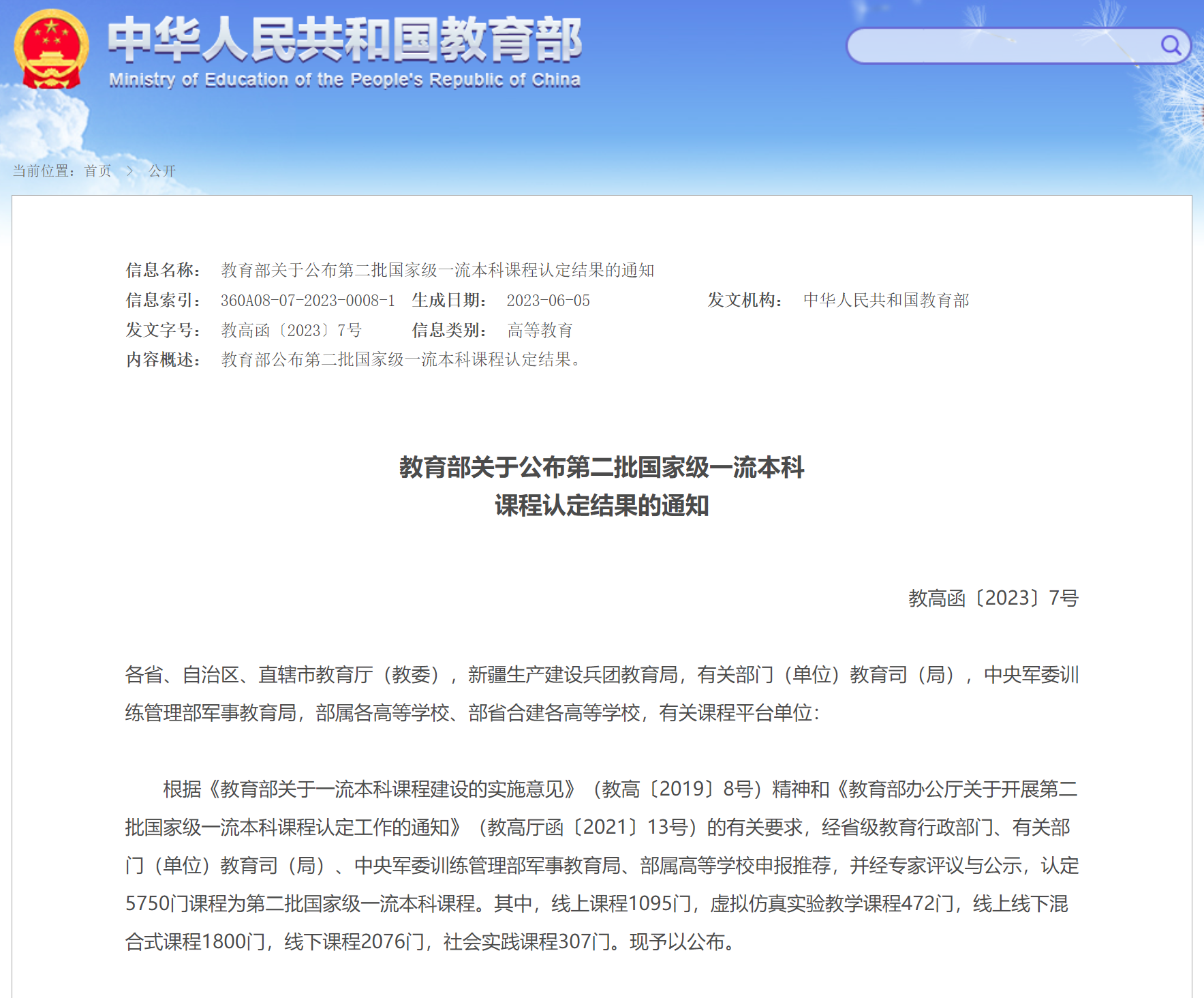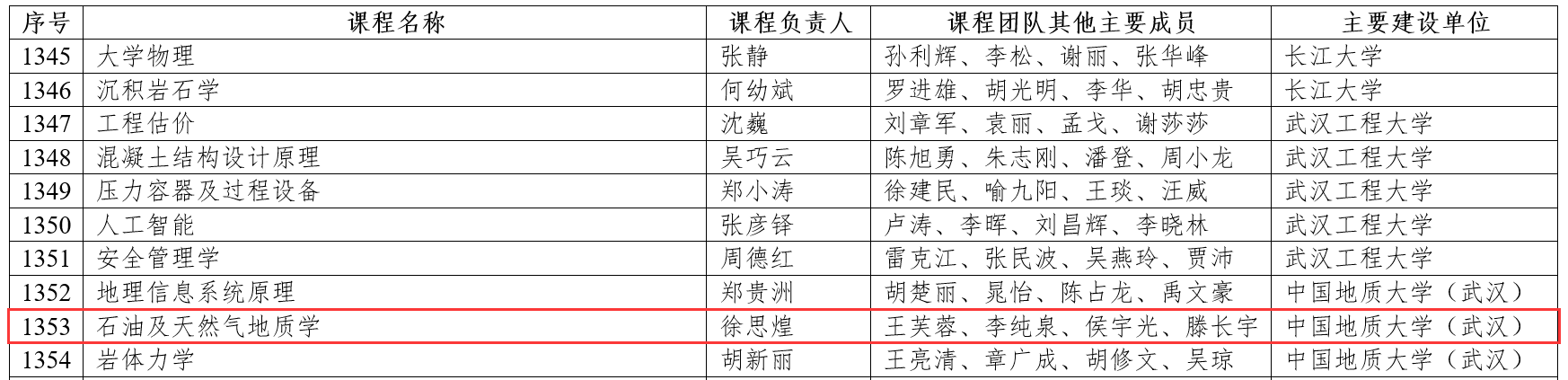 近日,教育部公布第二批国家级一流本科课程认定结果,万象城徐思煌教授牵头申报的“石油及天然气地质学”课程获批线下一流课程,蒋恕教授牵头申报的“非常规油气地质与工程一体化虚拟仿真实验”获批虚拟仿真实验教学一流课程。