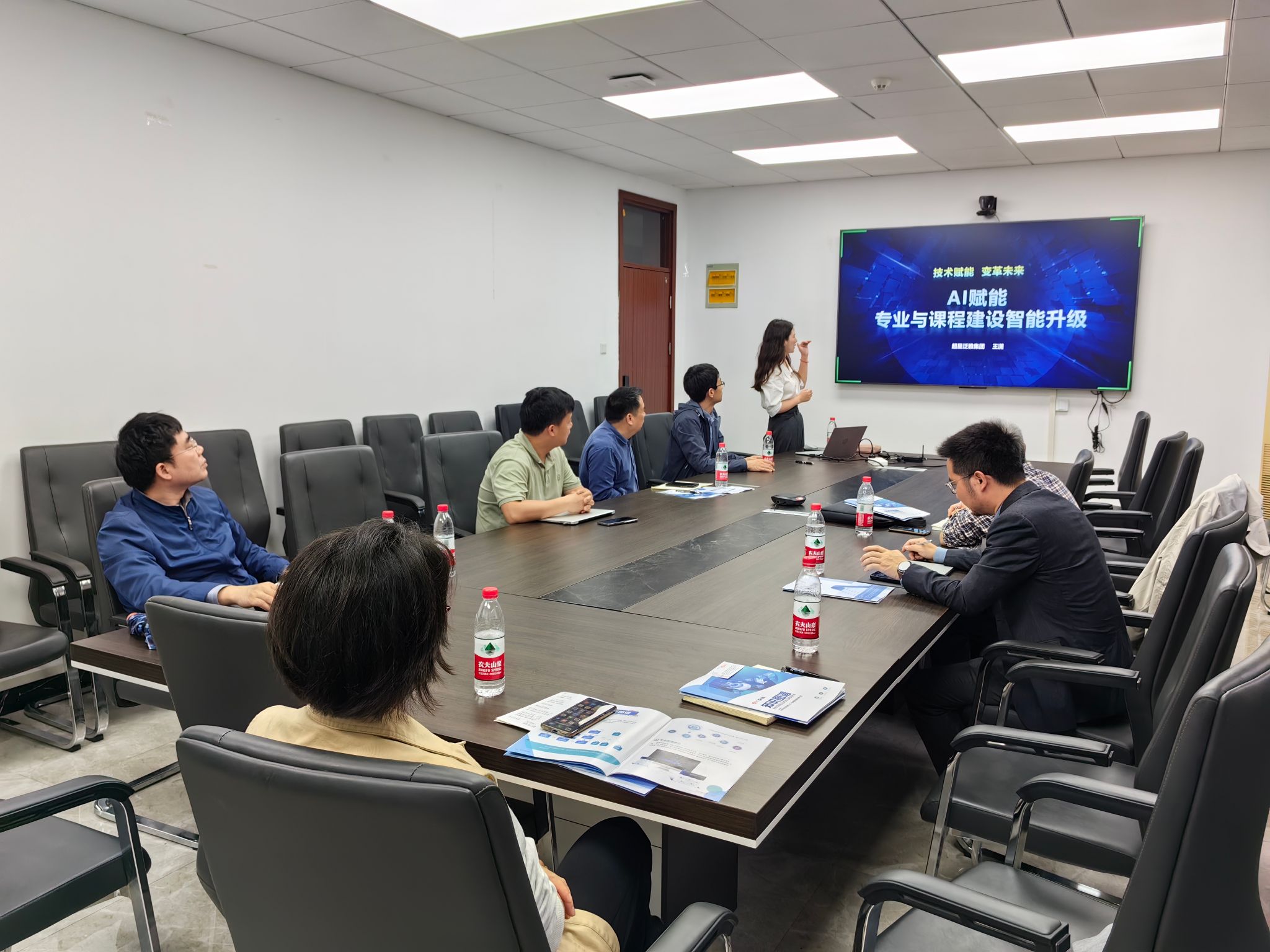 王潇高级讲师作“AI赋能—专业与课程建设智能升级”主题宣讲,解读了在教育部发布“101计划”背景下基于系统化的知识点逻辑关系建立数字化知识图谱的新政策、新背景及新方向,以及为何建知识图谱、知识图谱有何用和如何建知识图谱三个关键问题。他讲解了知识图谱、问题图谱及目标图谱对教材、教学体系及标准的革新,表示结合AI技术可视化、数字化可实现以学生为中心的数智课程转型。与会教师围绕专业课程建设、平台软件使用及相关资源数据应用问题进行咨询与沟通。