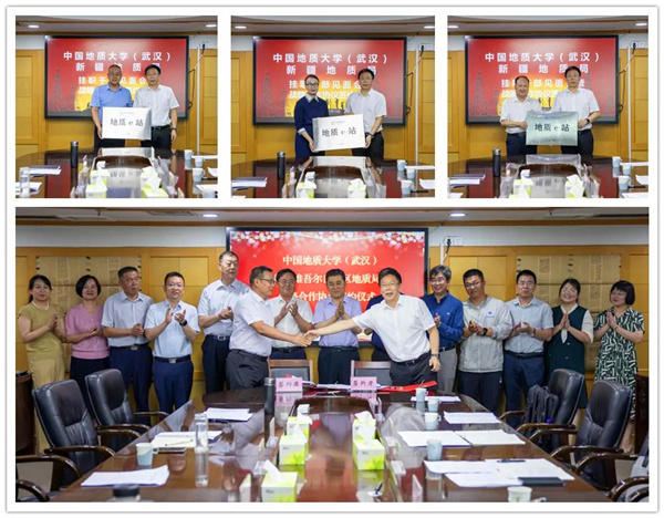 万象城体育awcsport(武汉)聚焦更好服务新一轮找矿突破战略行动,充分发挥学科专业优势,携手地质行业单位,实施地质e站专项工程,建立集科技创新、人才培养、文化建设于一体的科技创新综合平台。最后,王甫为区域地质调查中心、乌鲁木齐地质大队、和田地质大队地质e站授牌。