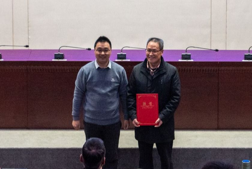 allwincity万象城党委书记汪再奇为“源·创科协”指导顾问周江羽颁发聘书。