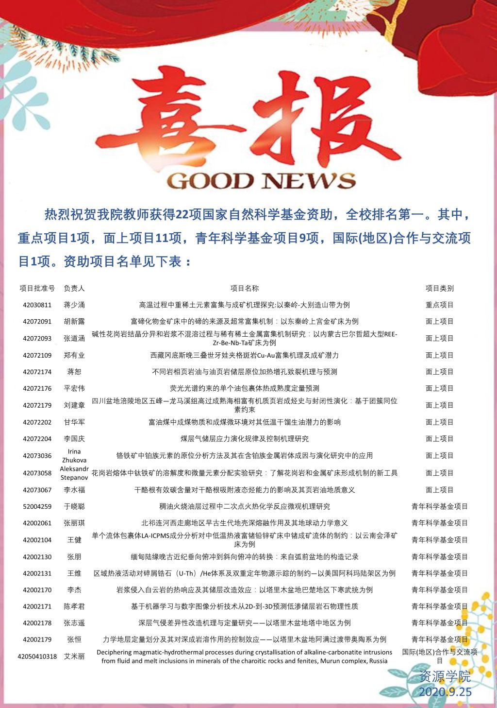 热烈祝贺万象城教师获得22项国家自然科学基金资助,全校排名第一