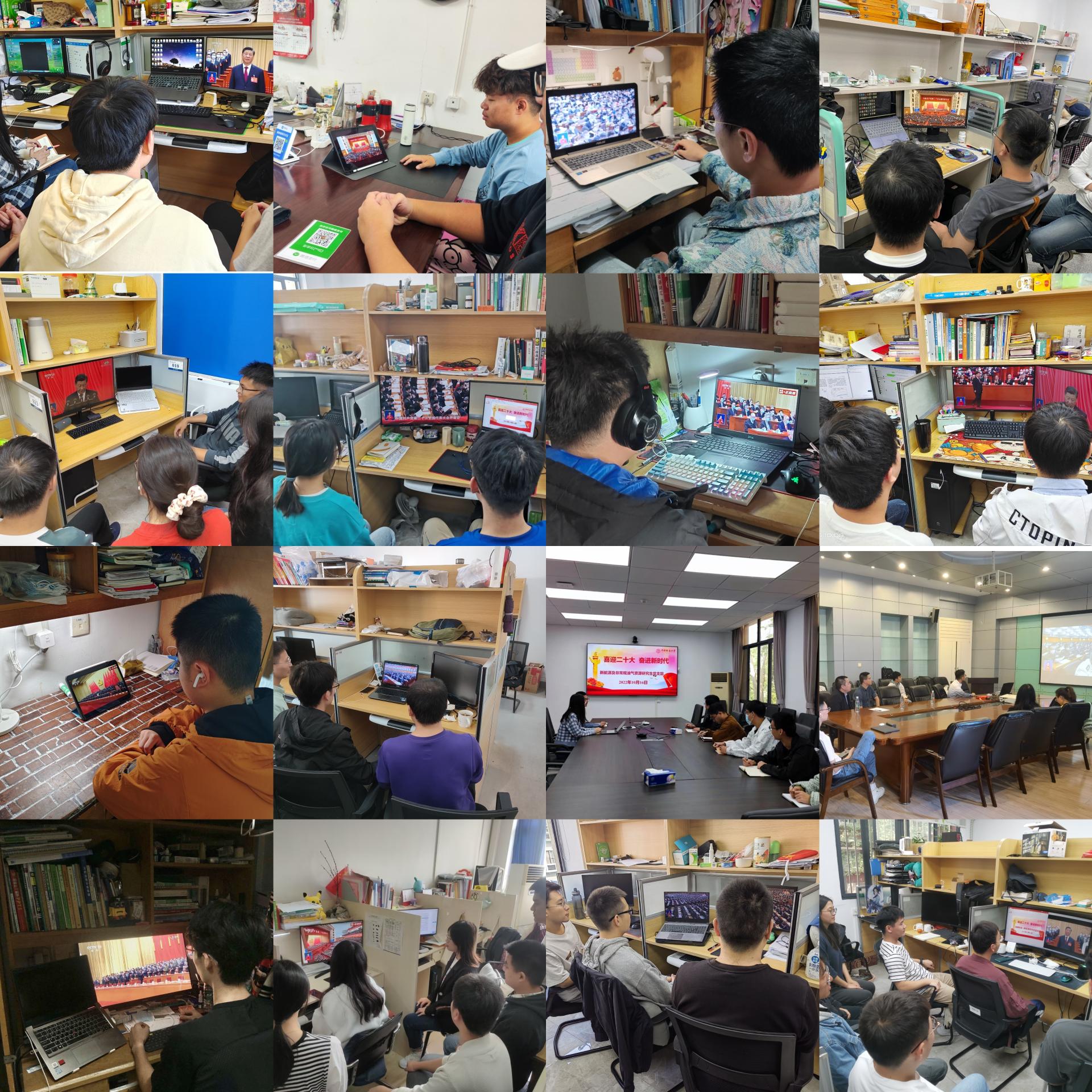 根据学院党委统一安排,在allwincity万象城201会议室、教三楼208和56#青年之家设立集中收听收看会场,组织学院党政领导班子,各三级单位党政班子成员,学生党支部书记,学生团支部书记,党团学学生组织成员,教师和学生代表集中收听收看大会盛况;同时,各师生党支部、学生团支部,依托系所属会议室、实验室、工作间、宿舍等组织全体师生小范围集中或自行收听收看大会。