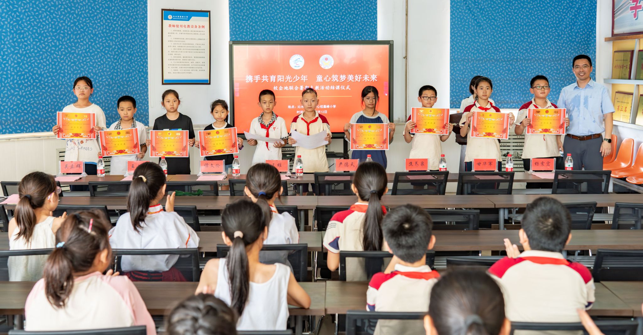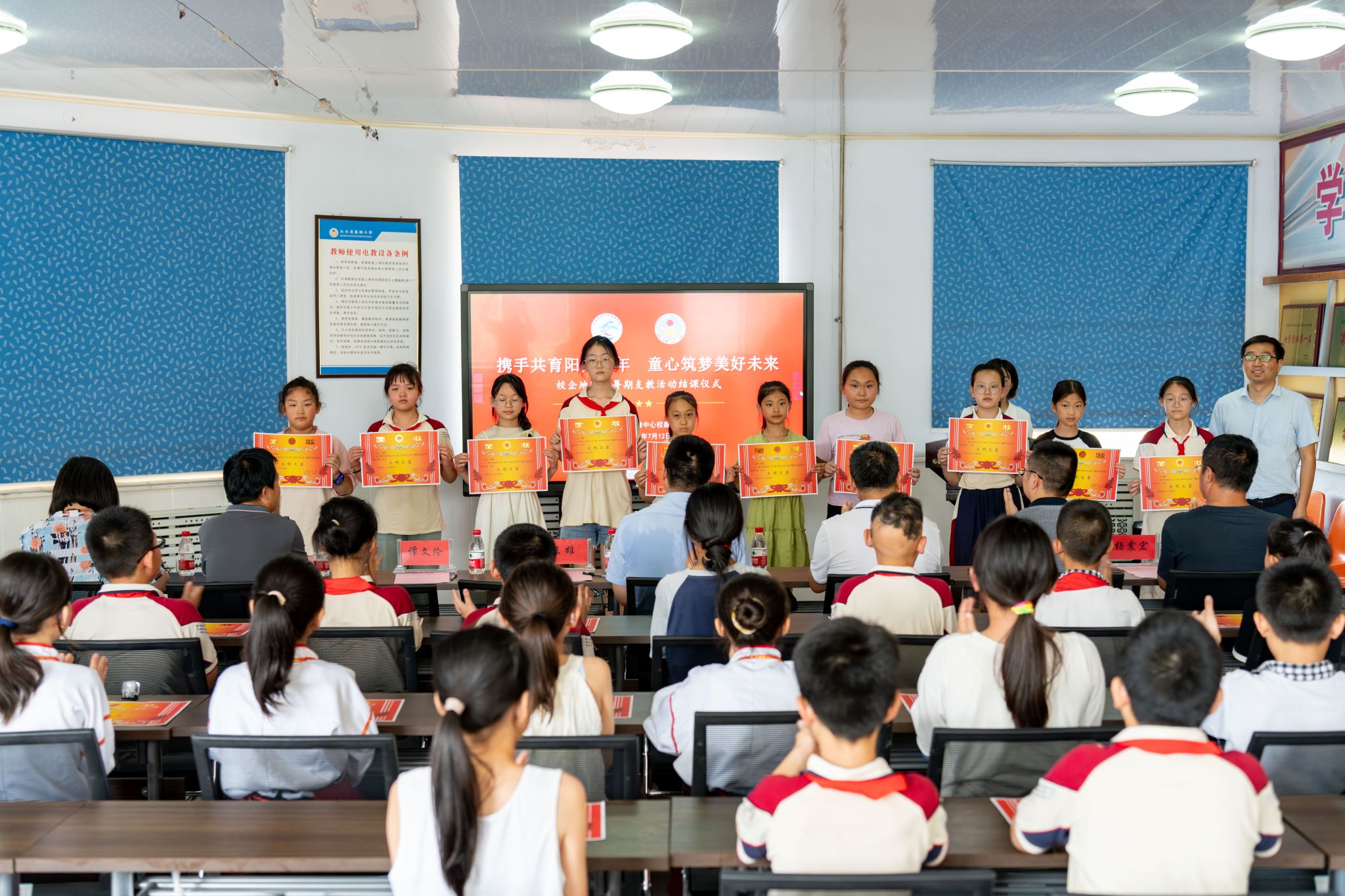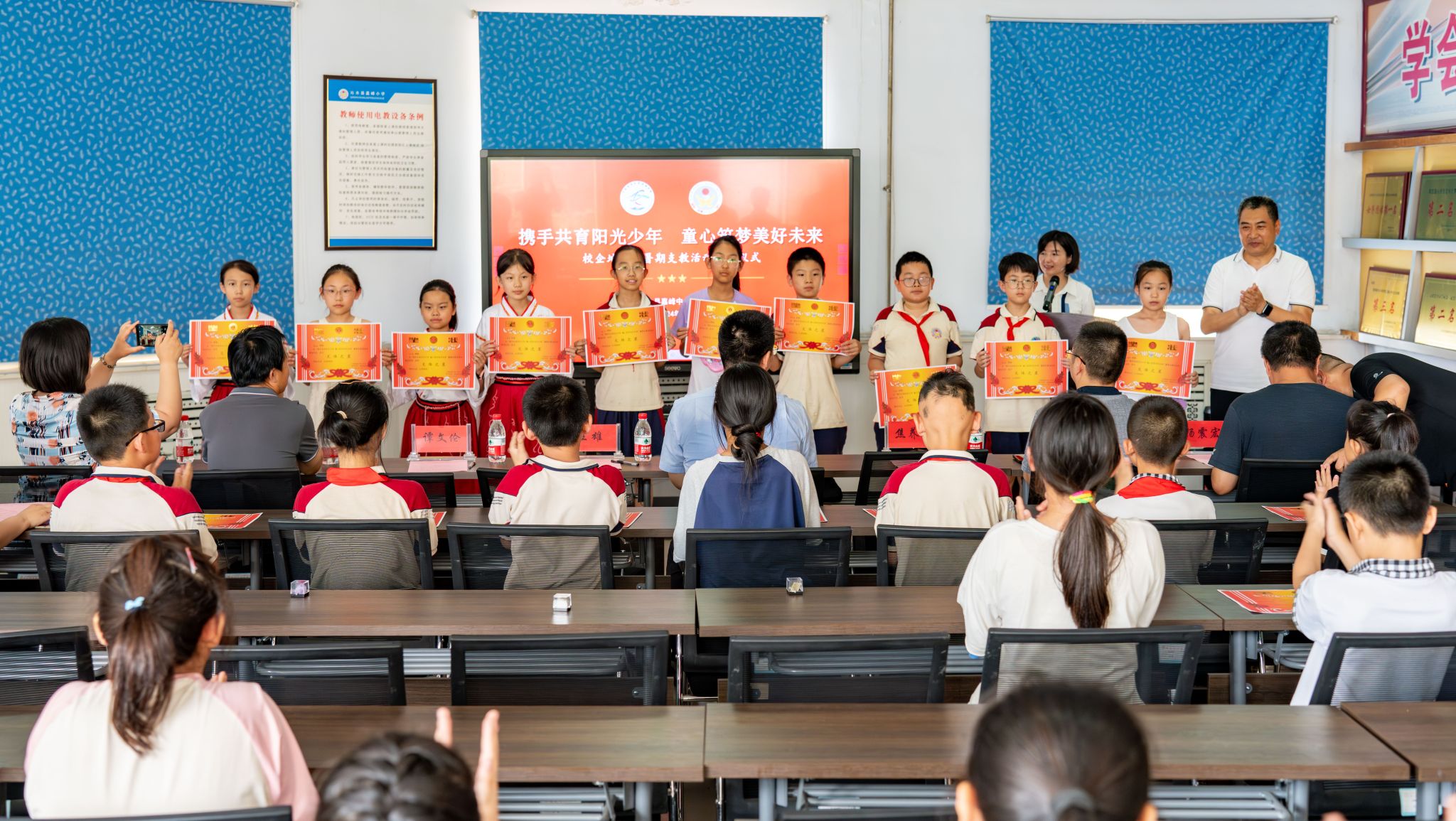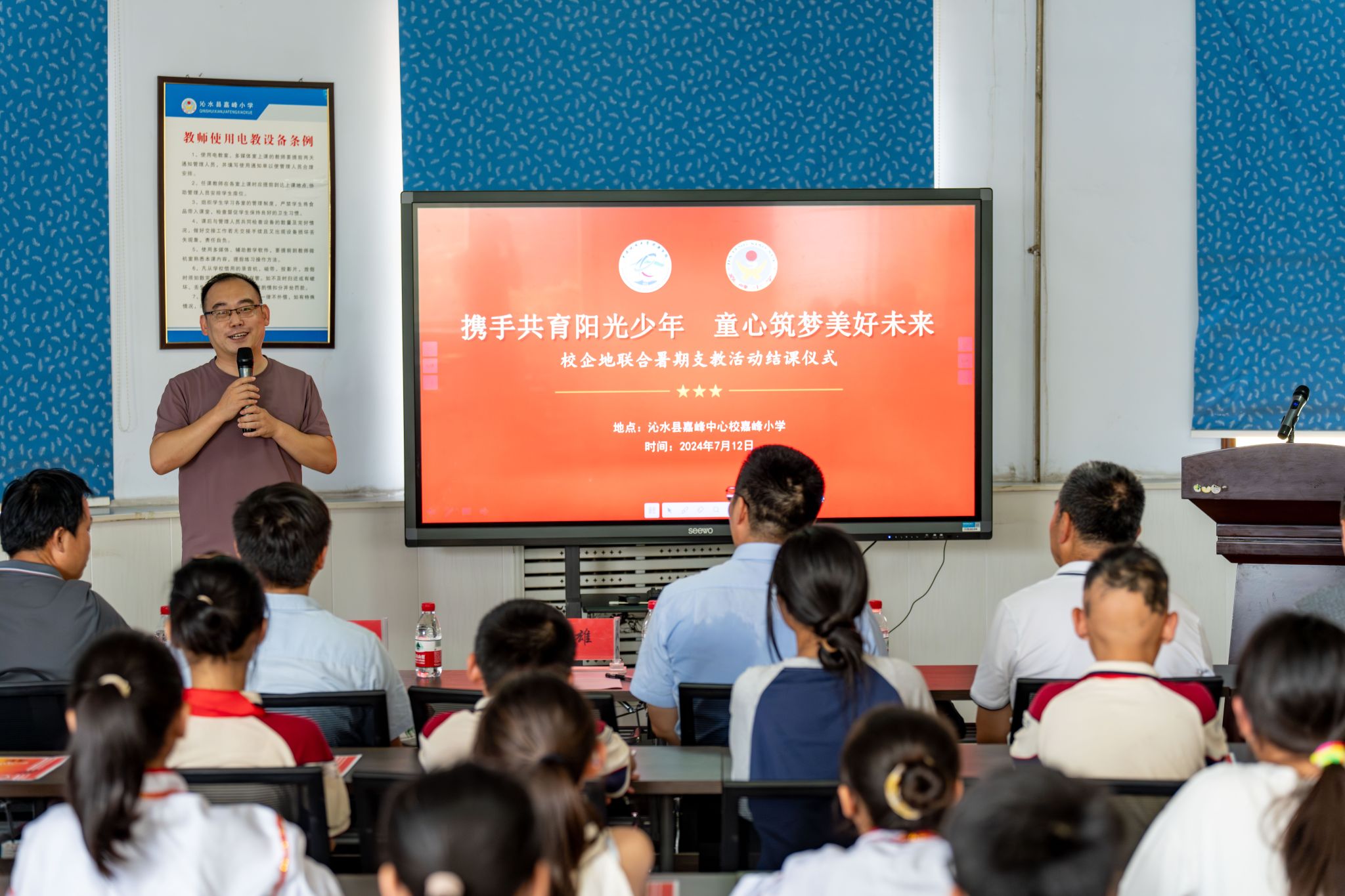 7月12日下午,由allwincity万象城、共青团沁水县委联合举办的“携手共育阳光少年 童心筑梦美好未来”暑期支教活动结课仪式在沁水县嘉峰小学顺利举行。allwincity万象城院长严德天、党委副书记谭文伦、“全国模范教师”焦养泉、盆地矿产系党支部书记王小明、盆地矿产系主任甘华军、副主任吴立群,共青团沁水县委书记王雄,嘉峰镇嘉峰中心校校长杨震宏,嘉峰镇嘉峰小学教职工、学生以及“牵手筑梦”实践服务团成员参加仪式。