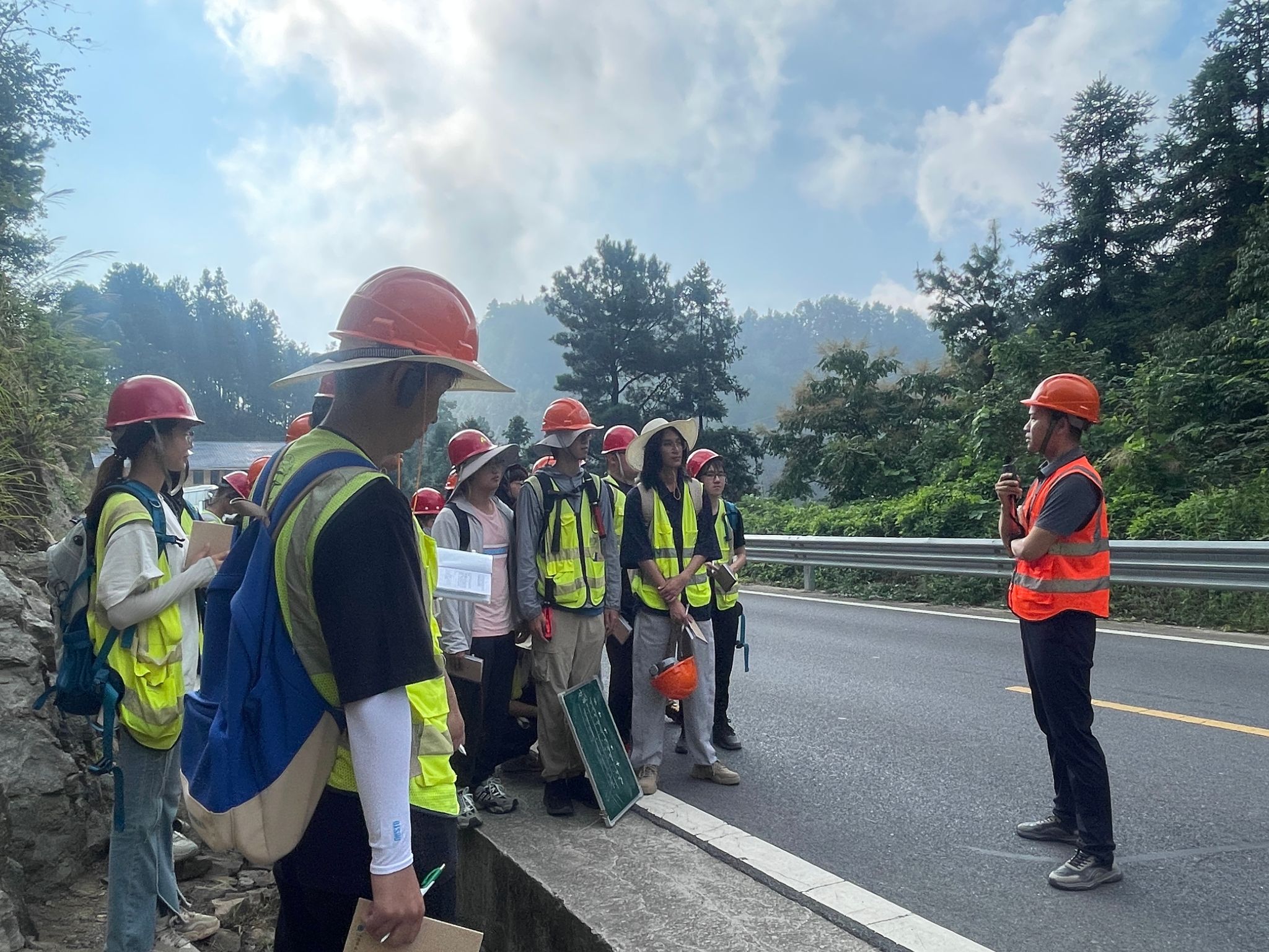 9月9日,高复阳、李占轲一行踏勘青林口教学线路,察看野外实践教学开展情况。在现场,学院实习队队长李嘉光介绍了石油工程(四周)和资源勘查工程(二周)的野外教学安排和进展,实习队学术指导刘晓峰介绍了教师集体备课情况。高复阳、李占轲与同学们共同聆听了沈传波、赵葵东、阮小燕等老师的授课,了解了资源勘查工程固体矿产和油气资源方向学生野外路线学习进展。高复阳介绍了暑假赴行业单位走访调研的交流情况,结合学院校友在单位的成长故事,鼓励同学们坚定“国之所需,我之所向”的专业报国志向,培养求实进取、勇攀高峰的宝贵品格,珍惜在野外实习机会,锤炼过硬地质工作本领,为未来事业发展打下坚实基础。