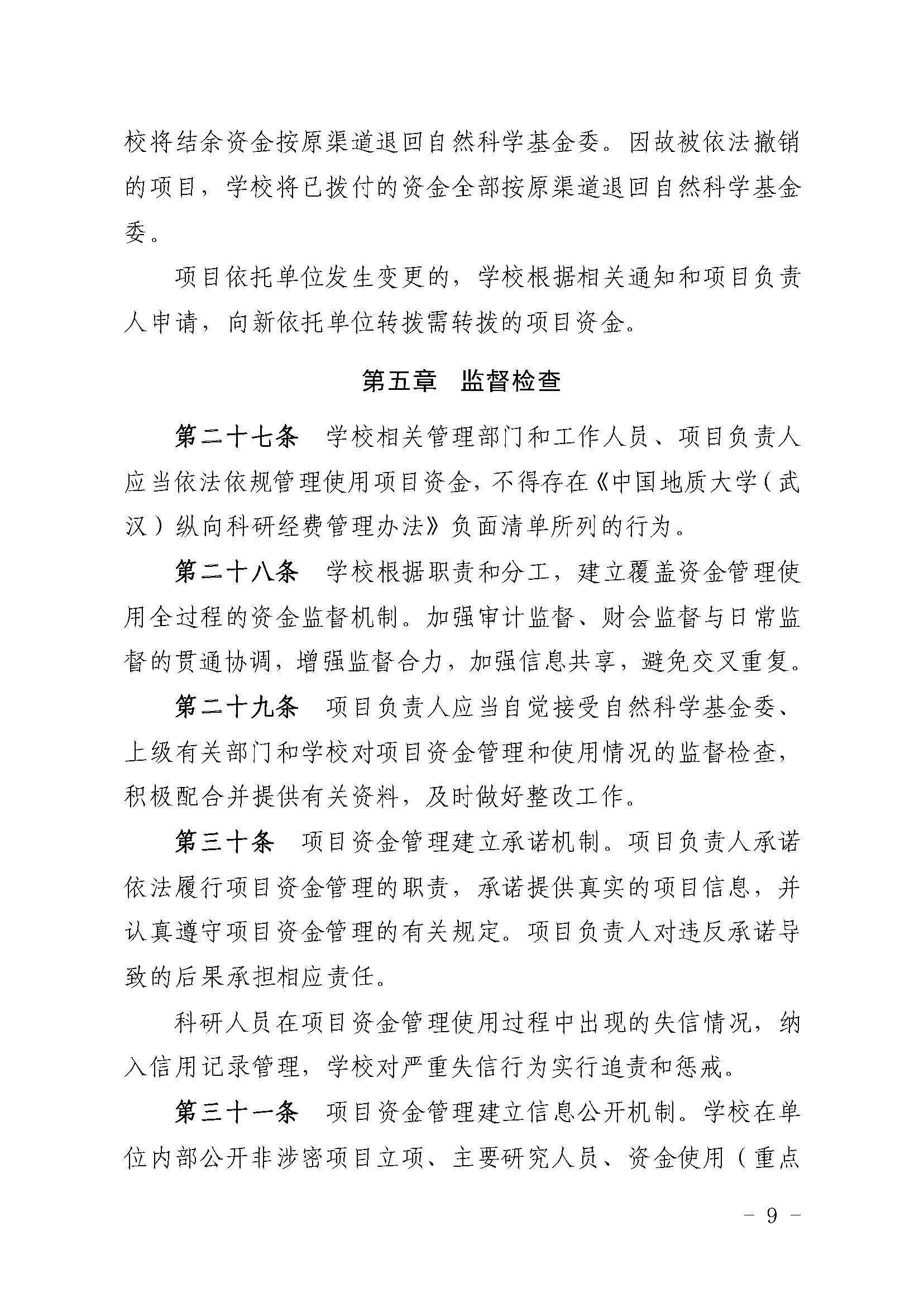 万象城体育awcsport(武汉)国家自然科学基金资助项目资金管理办法