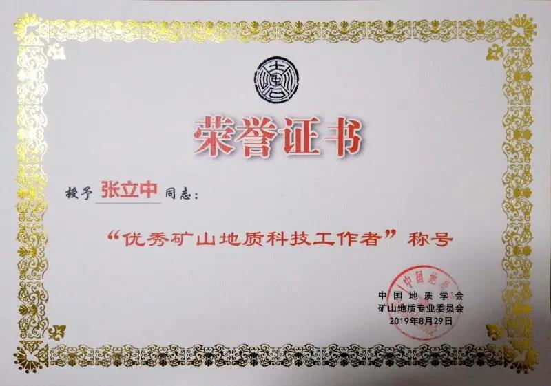 获优秀矿山地质科技工作者称号