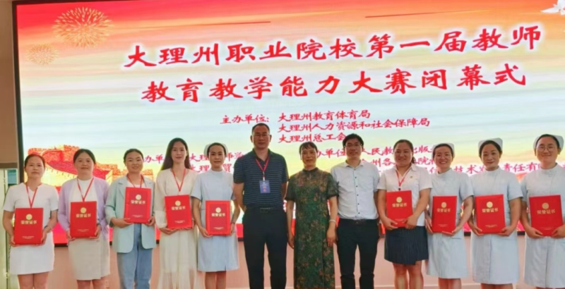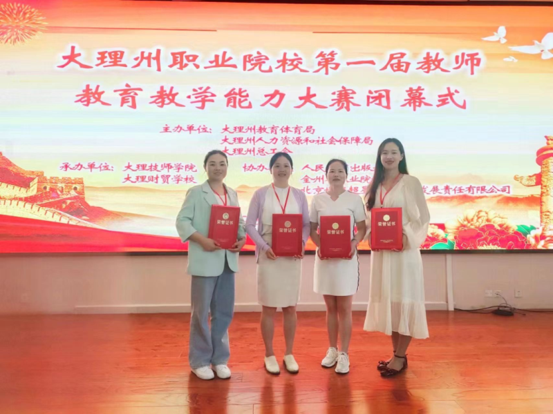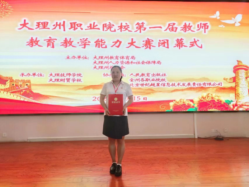 bat365中文官方网站教师在大理州教育体育局、大理州人力资源和社会保障局、大理州总工会组织开展的2022年大理州职业院校第一届教师教育教学能力大赛公共基础课组、专业课组、班主任能力组三个级组中荣获2个一等奖、1个二等奖和5个优秀奖的佳绩。