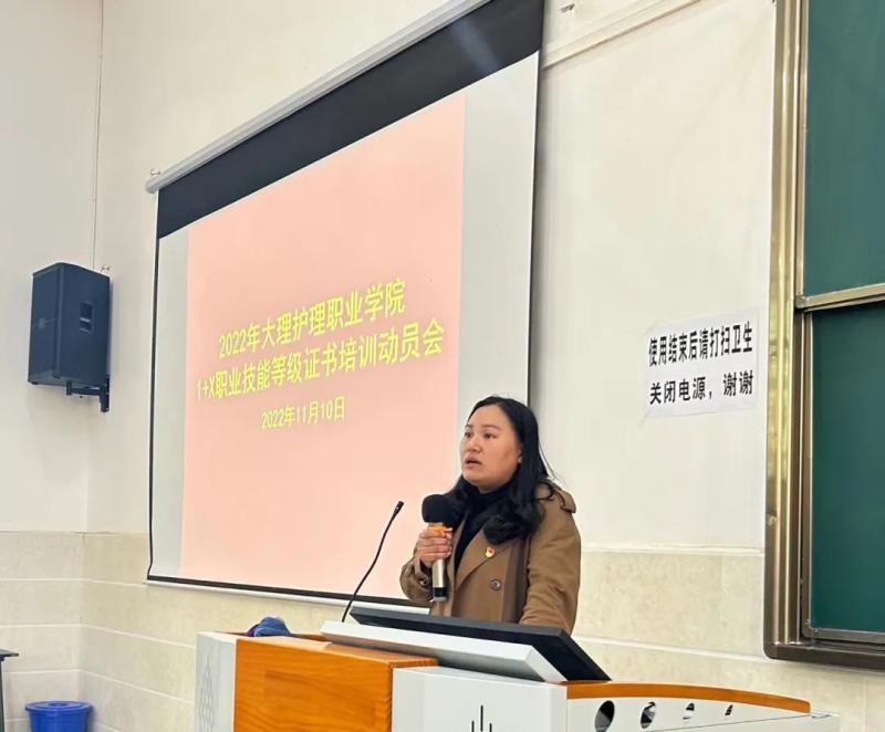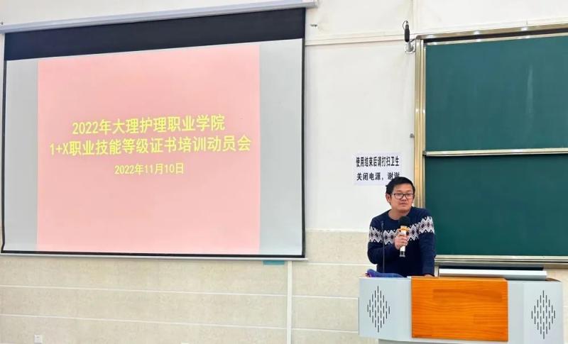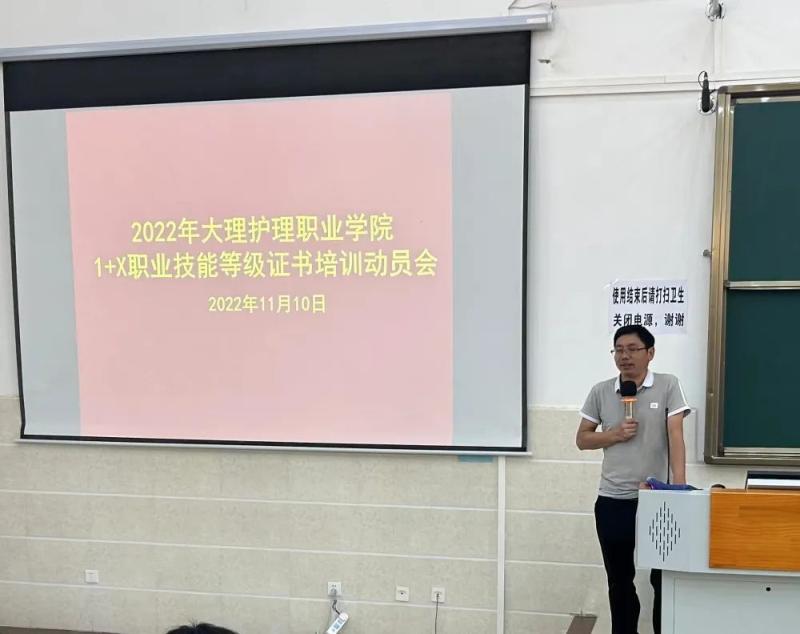 11月10日下午,bat365组织召开“1+X”职业技能等级证书培训动员大会。教务科、护理系、证书项目组教师和参培学生参加本次动员大会。会议由护理系郭太兵主任主持。