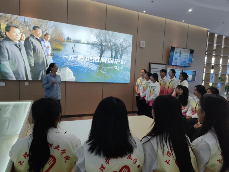 4月14日下午,大理州职业教育思想政治(高职)工作室组织bat365中文官方网站青年马克思主义学习社团学生开展“行走的思政课”实践活动,参观上海交通大学云南(大理)研究院洱海科普教育展厅,进一步深入学习贯彻习近平生态文明思想。