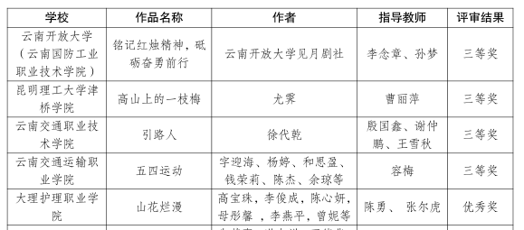 云南省教育厅关工委2024年“读懂中国”活动舞台剧获奖名单