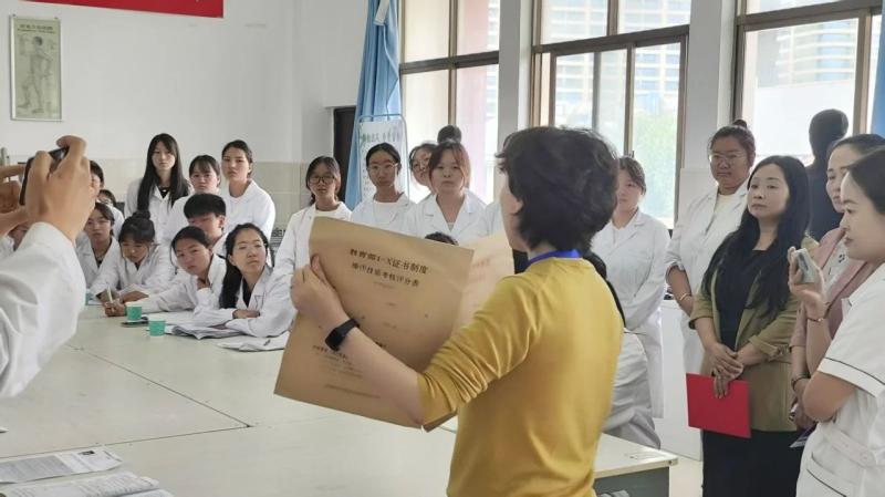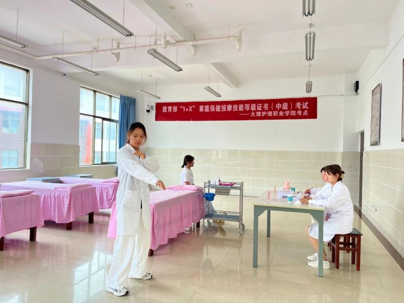 学校领导非常重视此项“1+X”证书考核工作。考核前一个月,本校具有考评员证书的教师对考生们进行了系统的培训。系部召开考务会,成立考试工作组,积极开展了设备调试、考场布置、考前测试等工作,严格按照1+X证书制度考核管理规定开展考务工作。本次考试分为理论和技能操作两部分,技能操作包含:口述高血压治疗的操作,女性痛经的按摩操作治疗及太乙道功法的展示。
