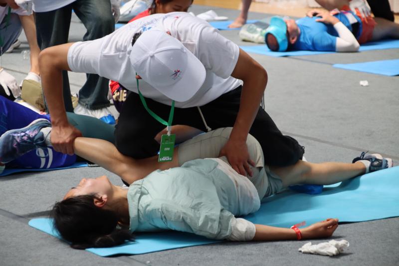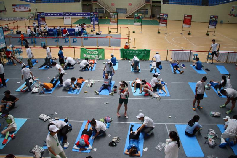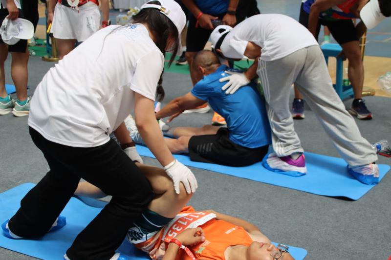 赛后恢复志愿者则在终点赛后恢复区,为完成比赛的选手提供专业的肌肉拉伸、放松按摩和康复指导服务。