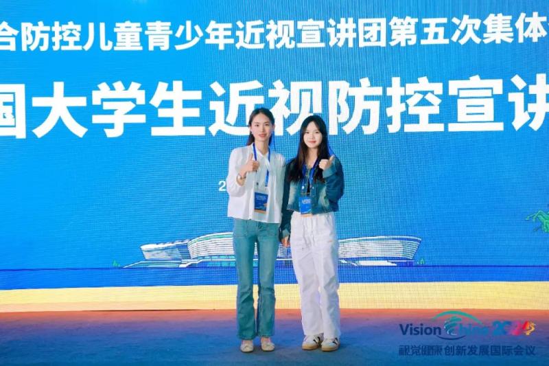 5月16日上午,第二届全国综合防控儿童青少年近视宣讲团第五次集体备课在温州瓯海奥体中心体育馆举行。200余位来自全国各地的宣讲团成员参加集体备课。bat365大学生近视防控宣讲团团长李美慧同学,眼视光技术专业郭殊琪老师参加此次活动。