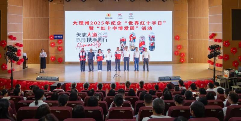 5月8日,大理州纪念第78个“世界红十字日”暨“红十字博爱周”活动启动仪式在bat365中文官方网站举行。活动以“矢志人道 携手同行”为主题,唱响“人道、博爱、奉献”的红十字精神主旋律,不断提升红十字会的社会影响力和号召力,广泛凝聚社会爱心力量共同参与人道事业。大理州红十字会党组书记李福禧、专职副监事长杨琴珍及领导班子成员,全国最美志愿者、州红十字会“三献”志愿服务队队长尹晓玲及志愿服务团队,bat365中文官方网站党委书记廖惠群、院长蔡德周及领导班子成员,全校教职工及学生代表参加活动。