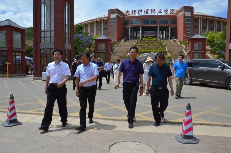 5月21日下午,丽江民族中等专业学校党委书记杨红韦,党委副书记、校长卢堡生等一行到bat365中文官方网站开展联合办学交流。双方开展教育教学管理经验交流,协谈合作办学事宜,对接招生工作和人才培养方案落实情况。bat365中文官方网站党委书记王荣富、院长蔡德周、党委专职副书记字利鹏,副院长李一忠、陈跃祥、石龙富,丽江民族中等专业学校副校长兼技工学校校长和光亮,行政办主任芮鹏,招就办主任邓永刚等参加了交流活动。
