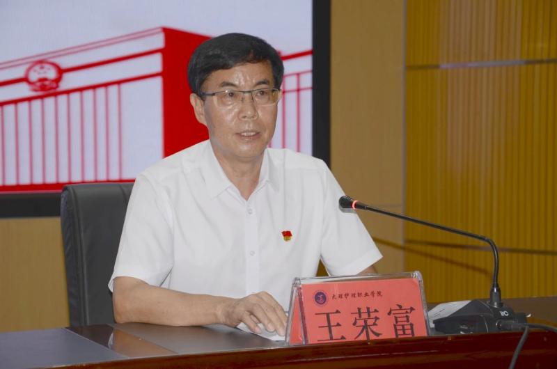 王荣富书记主持会议指出,习近平总书记“七一”重要讲话,站在统筹中华民族伟大复兴战略全局和世界百年未有之大变局的时代高度,回顾光辉历程、展望光明前景,是一篇马克思主义纲领性文献,是新时代中国共产党人不忘初心、牢记使命的政治宣言,是我们党团结带领人民以史为鉴、开创未来的行动指南,为我们奋进新时代、走好新征程进一步指明了前进方向、提供了根本遵循。王荣富书记要求,学习好、宣传好、贯彻好习近平总书记“七一”重要讲话精神,是全校上下当前和今后一个时期的重大政治任务。一要在持续学深悟透重要讲话精神上下功夫。坚持原原本本学,把学习“七一”重要讲话精神作为党史学习教育的核心内容,组织党员干部认认真真读原文、悟原理,吃透精神实质,把握核心要义。坚持融会贯通学,把学习贯彻“七一”重要讲话精神同学习贯彻习近平总书记关于庆祝建党百年系列重要讲话精神结合起来,同学习贯彻习近平总书记关于学习和总结党的历史的重要论述结合起来,同学习贯彻习近平总书记关于办好人民满意教育的重要论述结合起来,同学习“四史”结合起来,同学院教育教学工作实际结合起来,不断加深对“七一”重要讲话精神的理解、领会和把握。要创新方式学,通过党委班子示范学、支部班子集体学、邀请专家辅导学、党员研讨交流学、组织师生上网学、知识竞赛激励学,坚持线上线下、“三会一课”、主题党日、双报到服务、科室系部例会等多种形式,开展特色鲜明、形式多样的学习研讨活动,丰富学习方式,拓展学习深度,提升学习实效。二要在持续深化党史学习教育上见真章。要以学习贯彻“七一”重要讲话精神为契机,丰富拓展党史学习教育的内涵,推动党史学习教育往深里走、往实里走。深入开展面向师生对象化、分众化、互动化宣讲,确保“七一”重要讲话精神深入人心。要把学习领会“七一”重要讲话贯穿的初心使命、性质宗旨、深厚情怀,充分体现到“我为群众办实事”实践活动中,解决好广大师生“急难愁盼”的问题。三要在持续推动人才培养高质上求实效。贯彻落实“七一”重要讲话精神,最重要、最根本的就是要弘扬伟大建党精神,坚持党对教育教学工作的全面领导,全面贯彻党的教育方针,认真落实立德树人根本任务,自觉为党育人、为国育才的初心使命,积极推进教育教学改革,着力强化高职教育提质培优,持续增强学院发展的核心竞争力,把学习的成效转化为促进学院发展的实效,奋力谱写学院人才培养新篇章。