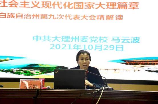 马云波老师立足于大理州第九次党代会精神和大理州委“大理之问”大讨论活动安排部署,融入新发展格局,围绕新发展理念,从大理州过去五年的工作及大理发展面临的问题;明确目标绘就大理未来发展美好蓝图;加快推动新时代大理高质量发展的主要任务;从严治党为经济社会发展提供坚强政治保证等四个方面进行了深入解读和讲解。马云波老师的宣讲紧密结合实际,主题鲜明、内容丰富、思想深刻、深入浅出、分析透彻,全面、系统、深刻地解读了州第九次党代会精神。全校师生深受启发、倍受鼓舞,激发了前行的动力。纷纷表示,一定要深入学习贯彻好州第九次党代会精神,回答好“大理之问”,全身心的投入到学校教育事业的建设和发展中,为教育兴州、科技强州作出应有的贡献。