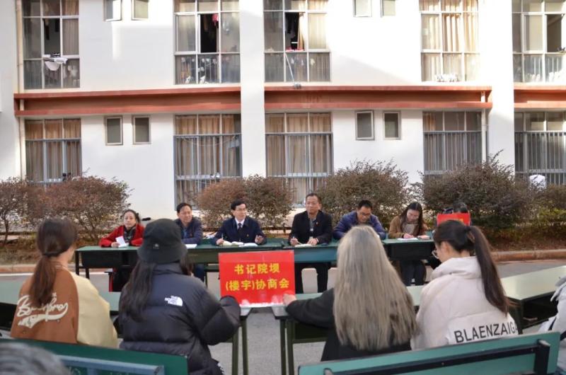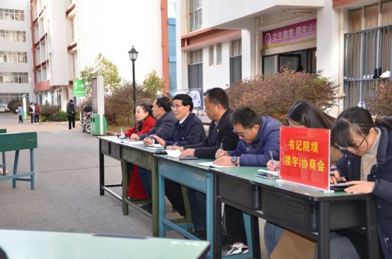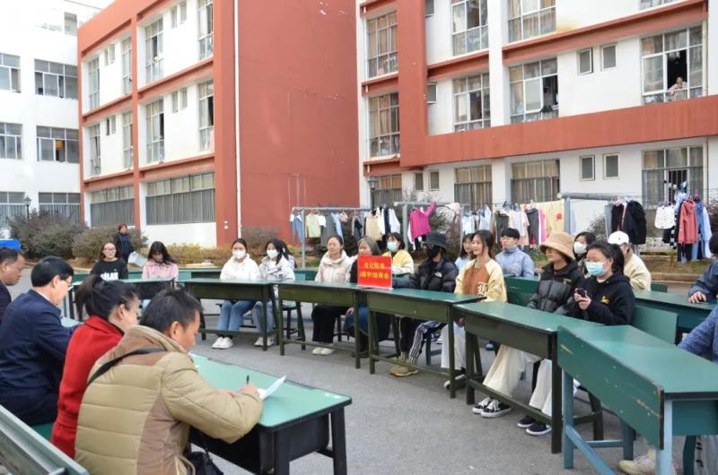 12月23日下午,为认真贯彻落实中共大理州委“大理之问”大讨论活动领导小组和党的建设工作领导小组《关于在全州探索试行“书记院坝(楼宇)协商会”做法推动“我为群众办实事”实践活动常态长效的通知》精神,学院在前期深入学生走访调研,征集意见建议的基础上,学院党委在学生宿舍区静雅苑楼前召开书记院坝(楼宇)协商会。学院党委书记王荣富,党委专职副书记字利鹏,党委委员、宣传部部长李大文,党委委员、组织部部长李洁,团委书记张磊,相关部门工作人员和25名学生代表参加协商会,会议由字利鹏副书记主持。