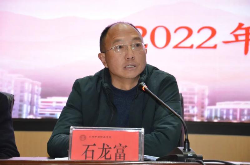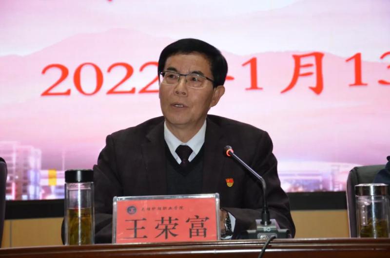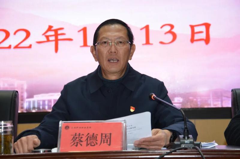 会上,蔡德周院长作了《踔厉奋发 笃行不怠 全面推进学院工作再攀高峰》的讲话。蔡德周院长从科学部署、有序推进,完成学院重点工作;教育为本、德育为先,不断提升人才培养质量;持之以恒、立德树人,持续加强学生思想政治教育工作及管理;结合实际、科学谋划,稳步推进招生就业;部门联动、相互协作,统筹做好联勤保障;居安思危、防患未然,维护校园和谐稳定;争创一流,不断提高门诊服务质量等七个方面对学院2021年党建工作和行政工作进行回顾。从全面从严治党,为学院改革发展提供坚强政治保障;深化教育教学改革,持续提高教育教学水平;严格招生,按质按量完成年度招生任务;加大专业建设力度,推进品牌专业建设;加强教师队伍建设;不断强化学生思想政治教育工作及管理;持续做好校园安全工作,确保校园安全稳定;加强学院门诊部工作等方面对2022年主要工作要点进行了布署和安排。蔡德周院长对学院下一步工作提出了三点要求,一是进一步增强政治意识、大局意识、核心意识、看齐意识;二是进一步增强责任担当意识;三是进一步增强纪律规矩意识。