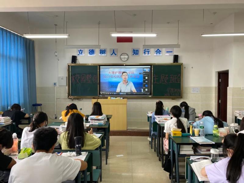 陈跃祥副院长指出,校风建设是学校发展的根基,抓好校风建设是促进学风、教风建设的关键。结合疫情防控常态化管理下,陈跃祥副院长对规范学生文明举止、文明行为、疫情防控、宿舍文明要求、安全用电、防溺水等工作提出三项要求。一是当前仍处于抗击疫情的关键时期,全校师生要遵守学校疫情防控工作要求,坚持非必要不外出原则,做好疫情防控工作,切实维护师生生命健康安全,共创健康和谐校园。二是要时刻绷紧安全弦,牢固树立安全第一的思想,充分认识到预防电信诈骗、预防溺水、安全用电、交通安全的重要性,掌握安全防范知识,切实到维护自身健康安全和财产安全。三是要讲文明,讲礼貌,遵守大学生日常行为规范。作为一名卫生职业院校学生更应该时刻注意自己的言行举止,加强自己的日常行为规范管理,做到衣着得体、仪表整洁、不吸烟、不酗酒,同学之间文明交往,把行为规范化为良好行为习惯,努力成为有情怀、有担当的时代新青年。