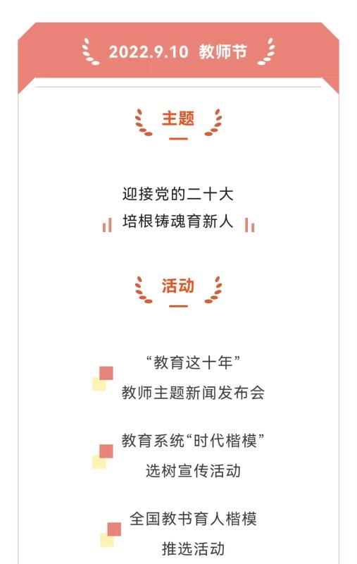 2022年9月10日是我国第38个教师节,也是党的十八大以来第10个教师节。日前,教育部印发通知,部署做好庆祝2022年教师节有关工作。跟教育小微一起来看↓↓↓