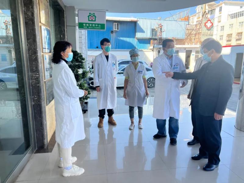 10月29日,省卫健委科教处李克林处长一行到bat365中文官方网站门诊部开展住院医师规范化培训基层实践基地现场评估工作。大理大学附属医院吴学东副院长现场指导,门诊部党支部书记赵丽娟、副主任廖建东、华志贞和相关职能科室负责人参加了评估工作。