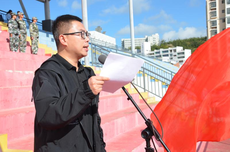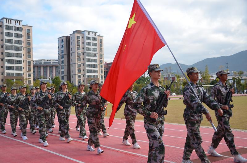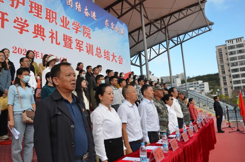 上午9:00,学校党委副书记、院长蔡德周宣布军训汇演开始。军训汇演在奏唱庄严的国歌声中拉开了序幕。
