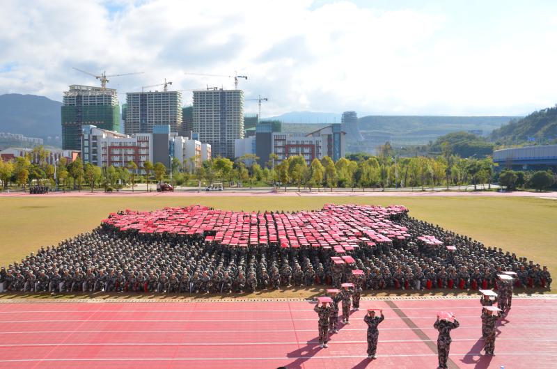 由2000名参训学生组成的花式操表演团队,在震撼寰宇的口号声中,集体依次拼绘出了“时刻准备着”、“五·四”、“还我山河”、“1921”……“1949”……“2022”、“请党放心,强国有我”和中华人民共和国地图等字图拼绘。新时代青年学子用自己的方式诉说百年党史,表达对革命先辈的敬仰和对祖国的热爱。彰显了新时代青年学子坚定不移听党话、跟党走,怀抱梦想又脚踏实地,敢想敢为又善作善成,立志做有理想、敢担当、能吃苦、肯奋斗的新时代好青年,把激昂的青春融入到全面建设社会主义现代化国家,实现中华民族伟大复兴的中国梦之中,用实际行动谱写不负韶华的新时代青春篇章的铮铮誓言。