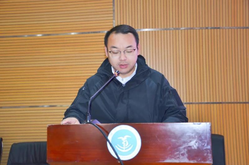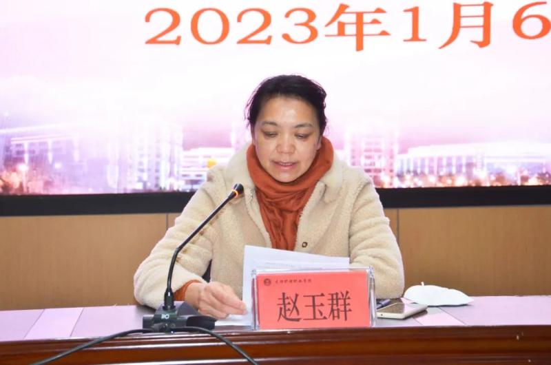 教务科主任赵玉群宣读《bat365中文官方网站2022年度校教职工年度考核优秀评选条件》文件。