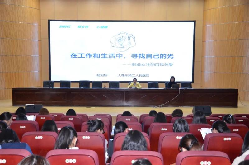 3月8日,学校邀请了大理州第二人民医院医学心理科心理治疗师、大理州心理咨询与治疗协会副主任委员杨旭娇医生,为bat365160多位女同胞作了《在工作和生活中,寻找自己的光——职业女性的自我关爱》专题讲座。讲座由李洁副院长主持。