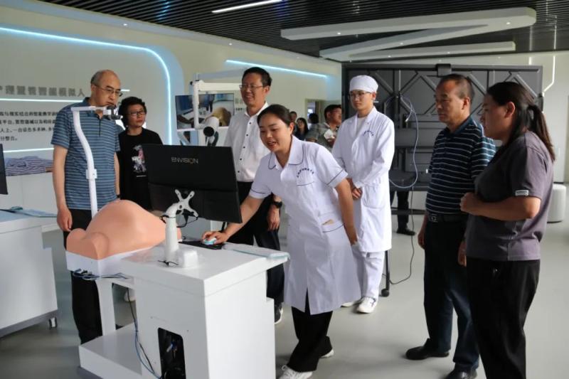 调研组一行先后深入校园、眼视光技术实训室、康复技术实训室、护理虚拟仿真实训中心等进行实地调研。