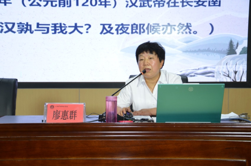 学校党委书记廖惠群以“增强文化自信,铸牢中华民族共同体意识”为题,从大理基本概况、大理历史发展轨迹、大理的文化资源和大理实施“文化铸州”战略等四个方面作民族文化知识专题讲座。
